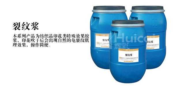 裂紋漿是我公司針對印花市場多樣化需求而研發(fā)推出的一款特殊膠漿,是由高分子特殊樹脂、顏料、助劑復(fù)合而成。使用該產(chǎn)品印制出的圖案具有裂紋自然,表面平滑,手感柔軟,彈性好,牢度高之特點,產(chǎn)品不含鄰苯二甲酸鹽、PVC、甲醛、及有害重金屬。