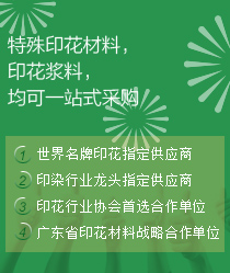 憑借先進(jìn)的化工技術(shù)、融合時(shí)尚潮流色彩,全面滿足客戶需求,多款式的特殊印花材料,印花漿料顏料均可一站式采購。