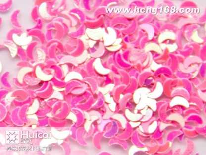 金蔥粉:又名閃光片。包括鋁質(zhì)金蔥粉,聚酯金蔥粉,幻彩粉,鐳射金蔥粉等。有鋁質(zhì),PET,PVC材質(zhì)。大小規(guī)格(size)由1/256(0、1mm)至1/8(3、0mm)。形狀有六角形,四角形,長(zhǎng)條針形和不規(guī)則形狀,并有多種顏色可供選擇。各種材質(zhì)金蔥粉可不同程度承受高溫(由80*C,180*C,300*C不等) 。