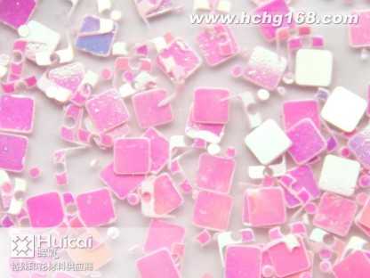 金蔥粉:又名閃光片。包括鋁質(zhì)金蔥粉,聚酯金蔥粉,幻彩粉,鐳射金蔥粉等。有鋁質(zhì),PET,PVC材質(zhì)。大小規(guī)格(size)由1/2560、1mm)至1/830mm)。形狀有六角形,四角形,長條針形和不規(guī)則形狀,并有多種顏色可供選擇。各種材質(zhì)金蔥粉可不同程度承受高溫(由80*C,180*C,300*C不等) 。