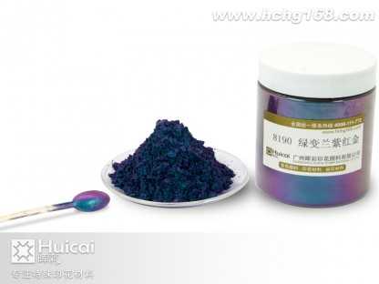 8190綠變蘭紫紅金變色龍粉其變色原理為吸收特定波長之紫外光源,藉由該光源之能量而產(chǎn)生顏色變化(變?yōu)樽仙?、紅色、黃色、天空蘭色),當(dāng)特定波長的紫外光源不在時(shí),即回復(fù)原來的顏色。