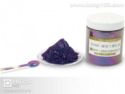 8190F綠變紫紅金變色龍粉其變色原理為吸收特定波長之紫外光源,藉由該光源之能量而產(chǎn)生顏色變化(變?yōu)樽仙?、紅色、黃色、天空蘭色),當特定波長的紫外光源不在時,即恢復原來的顏色。