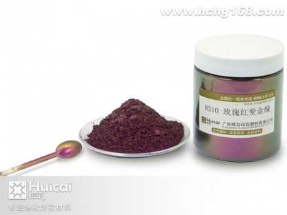 8310玫瑰紅變金綠變色龍粉是經(jīng)由微膠囊技術(shù)處理過的產(chǎn)品,外觀為粉狀,粒徑在1~10μm之間,并具有耐高溫、抗氧化等微膠囊所改質(zhì)的特性。