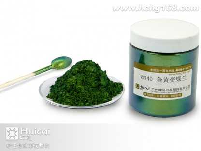 8440金黃變綠蘭變色龍粉是經(jīng)由微膠囊技術(shù)處理過的產(chǎn)品,外觀為粉狀,粒徑在1~10μm之間,并具有耐高溫、抗氧化等微膠囊所改質(zhì)的特性。