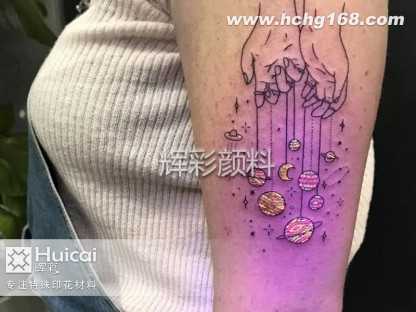 在日光下只是平淡不起眼的彩色小點,但只要用紫外線燈照射,它就會顯現它獨有的色彩。熒光紋身-滿足隱性張揚,獨有的熒光紋身(隱形紋身)采用全天然原料,既滿足個性張揚又能避免尷尬的困擾,詮釋一段個人成長記憶。
