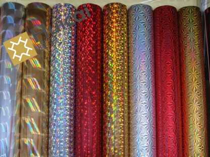 鐳射燙金紙廣泛應(yīng)用于服裝布料印花、燙印煙盒、酒盒、化妝品盒、禮品、茶盒、臺歷、賀卡等印刷包裝上