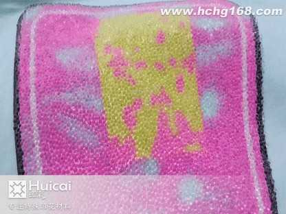 先印輝彩印花材料的HC-800粘珠漿一次吹干打底,然后再印第二次時以膠珠的大小來確定印粘珠漿的厚度,或是印第三次粘珠漿以便留有足夠的粘珠漿