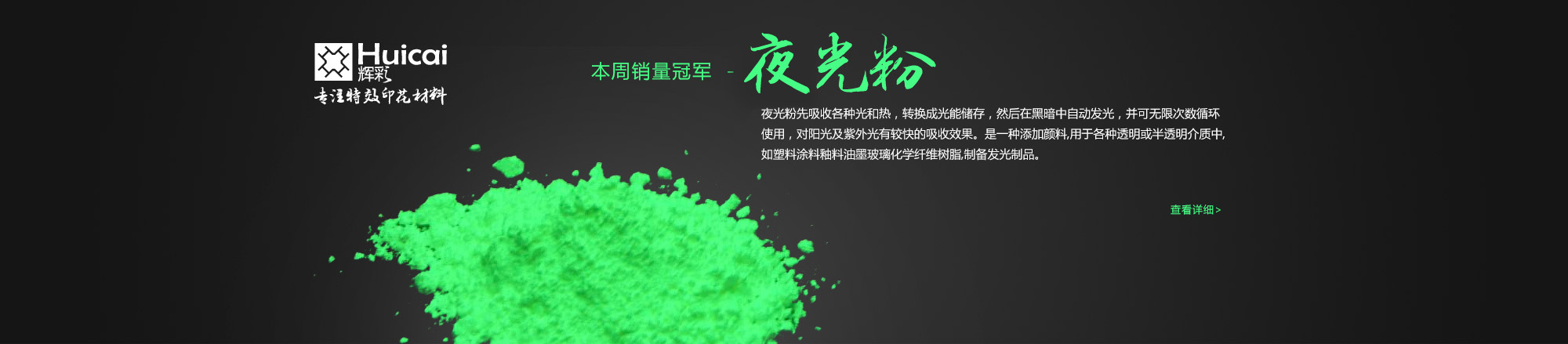 廣州市暉彩印花材料 是一家集研發(fā)、生產(chǎn)、銷售、服務(wù)于一體的專業(yè)的印花材料及工藝制品材料供應(yīng)商,主要產(chǎn)品有銅金粉、青金粉、紅金粉、印花膠漿、彩拔漿、珠光粉、夜光粉、反光粉、溫變粉、光變粉等,總部位于亞洲時(shí)尚之都——廣州,地理位置優(yōu)越,交通便利。
